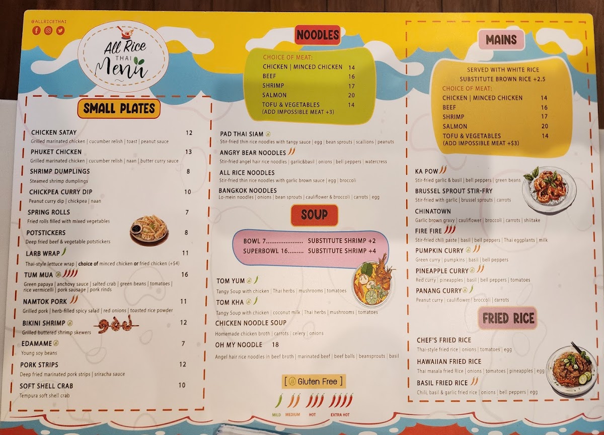 At All Rice Thai, located in Alexandria, Virginia, we celebrate the vibrant flavors of authentic Thai cuisine. Our culinary journey begins with a commitment to using fresh ingredients, crafting each dish to perfection. From our beloved fried rice variations to delightful small plates like Chicken Satay and Shrimp Dumplings, every bite reflects the heart of Thailand. Customers rave about our Kanom Krok and expertly prepared noodles, showcasing the delicate balance of textures and spices. With a warm, welcoming atmosphere and exceptional service, All Rice Thai invites you to experience the true essence of Thai dining right in your neighborhood.