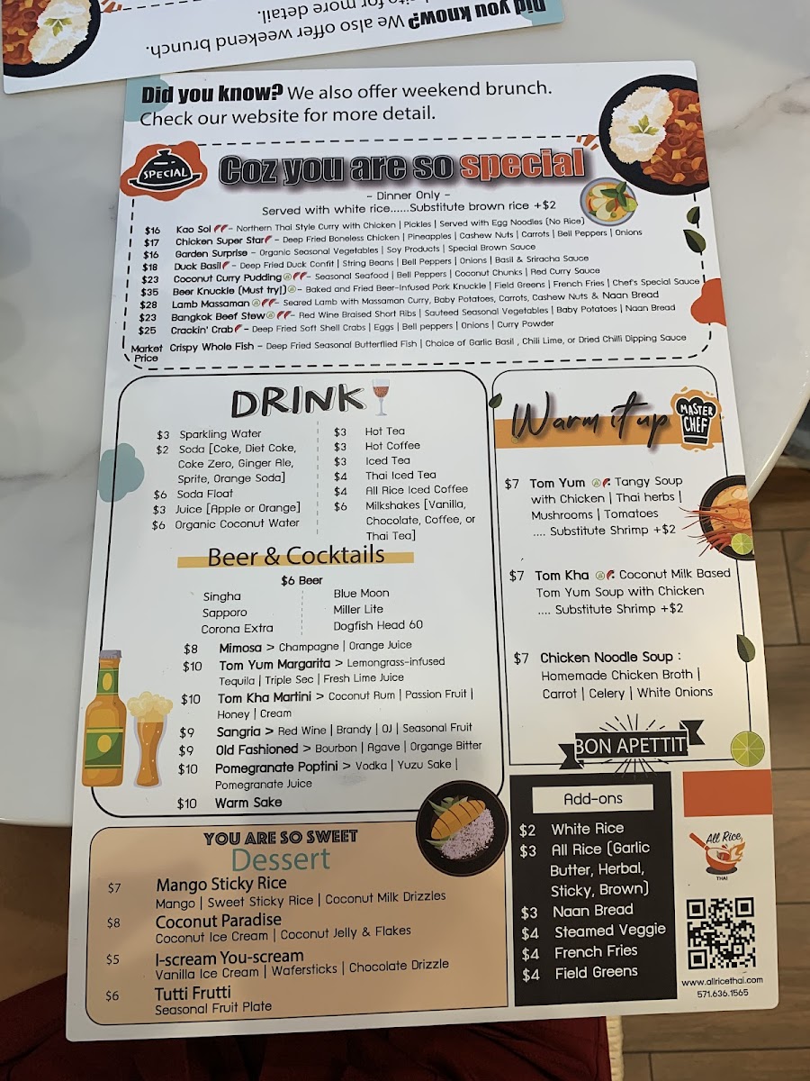 Welcome to All Rice Thai, a vibrant culinary gem located at 7001L Manchester Blvd, Alexandria, VA 22310. If you're in search of authentic Thai cuisine that marries tradition with innovation, this is your destination. With a phone call away at +1 571-636-1565, All Rice Thai invites you to savor the true essence of Thailand, right here in the heart of Alexandria.